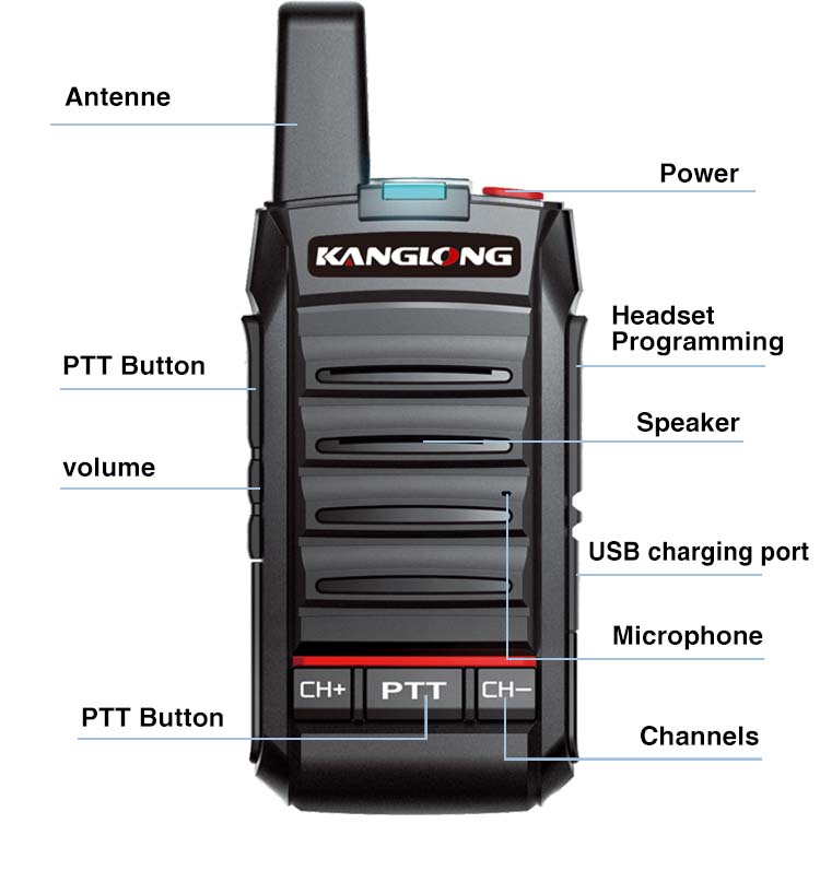 Le KANGLONG T-210 est une radio analogique ultra-mince de 2 W sans licence, conçue pour une communication sans effort dans le commerce de détail et l'hôtellerie, avec un chargement USB pratique.
