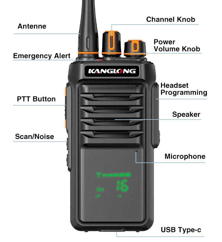 Le KANGLONG P500 est conçu pour les professionnels exigeant une communication claire même dans les conditions les plus extrêmes. Avec une puissance de 5 W, il offre un signal stable et longue portée, capable de traverser les structures denses et les vastes espaces extérieurs. Son indice de protection IP68 lui permet d'être immergé jusqu'à 1,5 mètre de profondeur pendant 30 minutes, ce qui en fait l'outil idéal pour les chantiers pluvieux, les zones minières poussiéreuses ou les opérations maritimes en mer. Compact et robuste, le P500 allie portabilité et durabilité à toute épreuve.